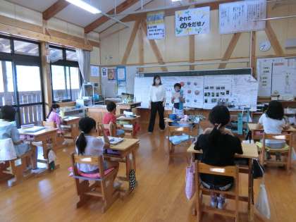 夏休みの自由研究が黒板に貼ってありました。どれも力作です。またじっくり一つ一つ見せてもらいたいなと思います。みんな落ち着いて席について、先生の話を聞いていました。コロナの感染予防に関して「守れていますか?」というチェック項目を朝の会で読み上げて、みんなで確認していました。