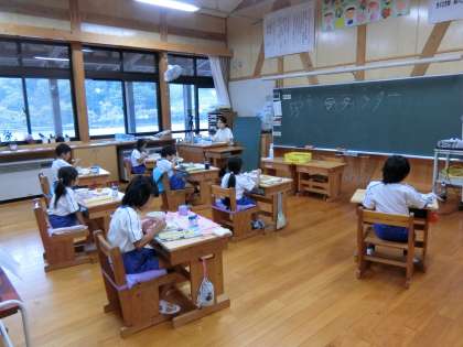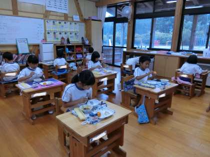 とても静かに食べている1年生の子どもたちでしたので、私も声をかけずに「はなまる💮」と黒板にメッセージを書きました。子どもたちは声を出さずに親指で「good job!」と笑顔でリアクションしてくれました。みんなおいしそうに給食を食べていました。午後の授業もがんばりましょう。