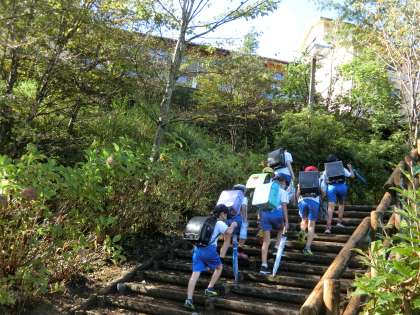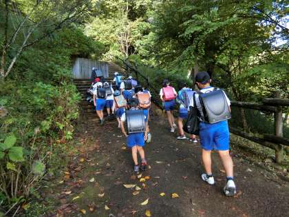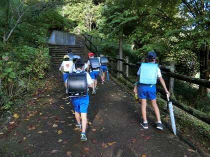 9月の始めには栗もススキもどんぐりも緑色をしていましたが、秋がどんどん進んでいます。登校時、坂を登っていく子どもたちの足元に色づいた葉っぱが落ちています。