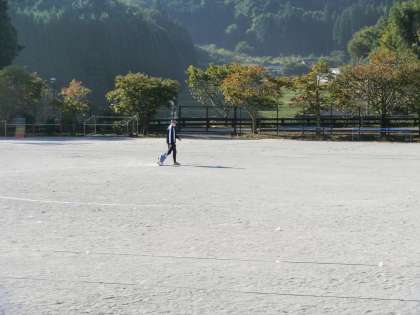 子どもたちが登校してくる前に、運動場で先生がラインを引いていました。今日も運動会の練習があります。午前中は、高学年の一輪車演技の練習と全校の六色リレーの練習、午後からは1年から3年までの低学年ダンスの練習の予定です。本日、お子さんを通じて運動会のプログラムを配付します。