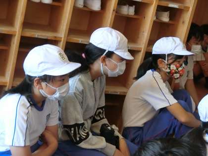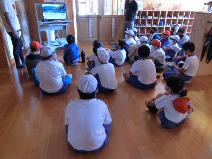 自分たちの一輪車演技の様子を撮った映像を真剣なまなざしで見つめる子どもたち。自分たちの演技をどう感じて、どうしたいのか。技術的な部分、みんなで合わせる部分、気持ちの部分。子どもたちの心が動いて、子どもたち自身が行動するところに成長があります。