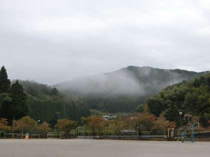 おはようございます。肌寒く感じる朝です。学校のすぐそばを白い霧のようなものが流れていきます。霧なのか、もやなのか、雲なのか分かりませんが、市街地から下山方面を見ると、雲がかかったように見えるんだろうなと思います。もうしばらくすると晴れてくるでしょう。