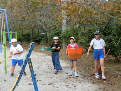 低学年の子たちも、石拾いや落ち葉掃きをがんばりました。明日に備えて今日は早く寝てくださいね。