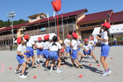 1年生から3年生の「玉入れ」です。3回とも白組が勝ちました。どちらの組も楽しそうにがんばりました!