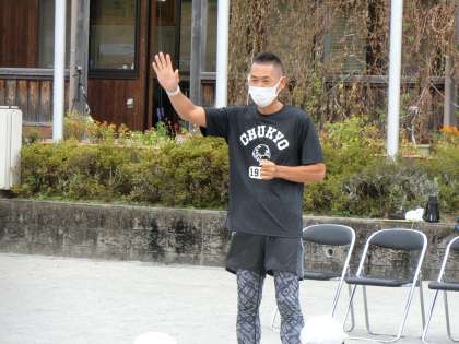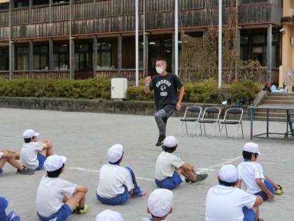 午前中に元オリンピック選手の青戸慎司さんにお越しいただき、3年生以上の子どもたちが走り方の指導を受けました。青戸さんは短距離の選手としてソウルとバルセロナの2大会に出場するとともに、長野オリンピック(冬季)にもボブスレーの代表として出場されているスーパーすごい方です!