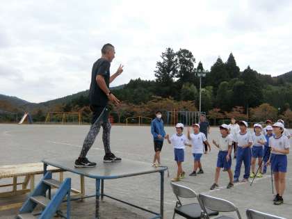 走り方のご指導を受けている様子です。後半の、実際に子どもたちが走っている様子は、また写真とともにアップしたいと思います。