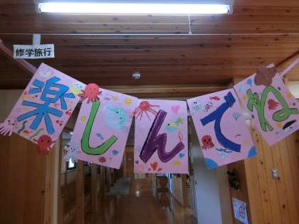 4年生が廊下にメッセージを飾ってくれました。1,2年生は先週、テルテル坊主を作ってくれました。温かい気持ちを贈ってくれてありがとう。