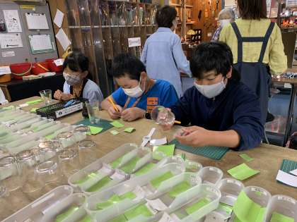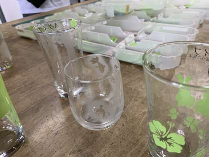 思い出作りにサンドブラストでコップ作りに挑戦中です。