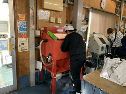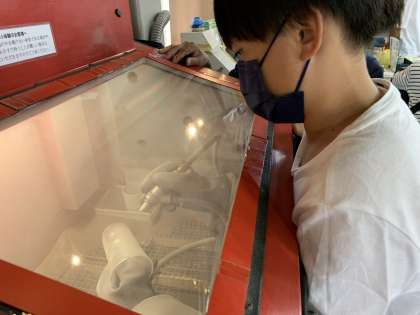 指導していただいて、自分で機械で削ります。職人のよう。