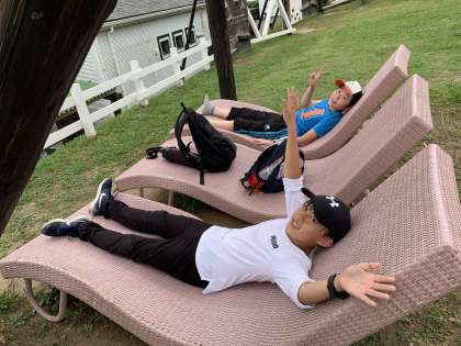 アスレチックに行っていた子どもたちが汗びっしょりで帰ってきました。なかなかハードなアスレチックで、全部回るのに2時間近くかかりました。口々に楽しかったと言っていました。2日間、遊び倒しました。今から学校に向かいます。