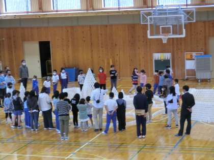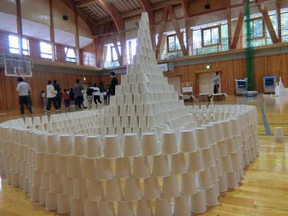 途中で何度か崩れながらも、協力して立派な作品ができました。塔のような作品、床を広く使ったまち、出入り口があって中に入れる作品。巴の漢字を形作った作品もありました。子どもたちはとても楽しそうに夢中になっていました。