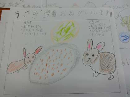 たくさんの子どもたちが可愛がってくれました。夏休みのウサギ当番をしてくださった皆様、ゆうきが大変お世話になりました。一人ぼっちになってしまったくるみを、これからもよろしくお願いします。みんなでかわいがっていこうと思います。