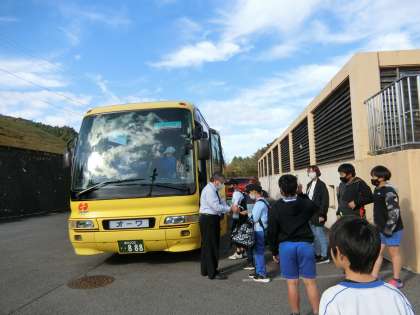 バスが見えなくなるまでみんなで見送ってくれました。5年生の子たちは嬉しかったと思います。修学旅行に引き続き、私(※平井)も引率で六所に行きます。子どもたちと同じタブレットで活動の様子をアップしていきます。行ってきます!
