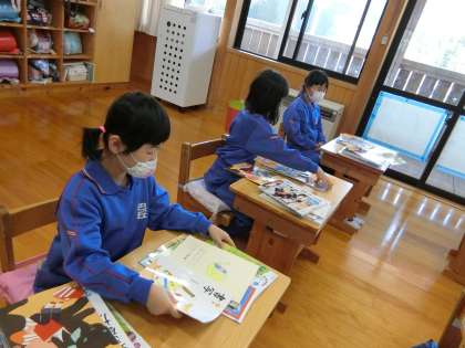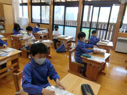 学校の中でいちばん人数が多い3年生です。13人の学級です。元気いっぱいです。今朝の朝の活動は教科書の確認です。一冊ずつ教科書を確認して、学級で集めて保管するもの、個人で保管するものを分けていました。新しい教科書をもらうとワクワクしますね。3年生では、生活科がなくなり、理科と社会の勉強が始まります。楽しみですね。