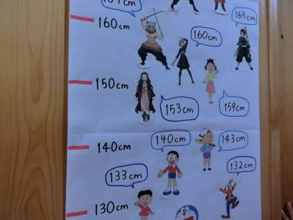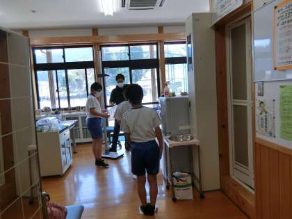 2時間目は身体測定です。今日は体重、身長、視力、聴力などを測定します。保健室前には工夫された掲示物がいろいろと貼ってあります。子どもたちが自分の体の成長や健康に興味をもてるように養護教諭がいろいろと工夫しています。春休みが終わって久しぶりに学校に来た子どもたちを見て、「身長が伸びたなぁ」と感じる子がたくさんいました。