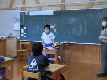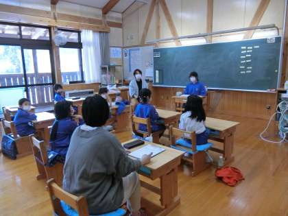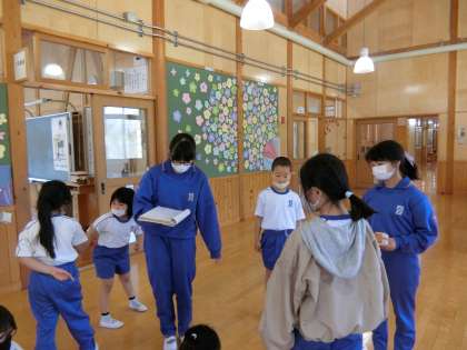 3時間目は通学団会です。1年生の子が困らないように、並び方を考えて確認します。実際に並んで隣同士の子を確認している通学団もありました。みんなで声を掛け合って、安全に登下校しましょう。