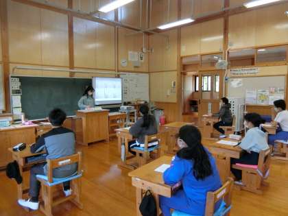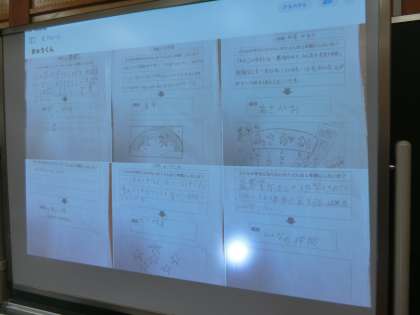 1時間目は学級活動で「級訓決め」です。子どもたちは、あらかじめ自分の考えや「こんなクラスにしたい」という願いをプリントに書き、先生がそれをプロジェクターで映しながら話し合いを進めていました。小学校最後の1年ですね。級訓が1年間の大切な「学級の支え」になると思います。よい級訓をみんなで考えてくださいね。