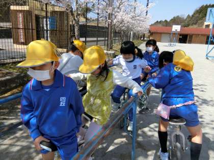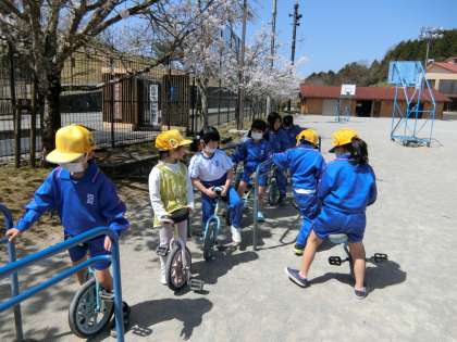 ちょっと慣れてきたのか笑顔も見られるようになりました。何度も何度も友達のうしろに並んでチャレンジします。子どもたちは頼もしいですね。がんばれ、がんばれ!