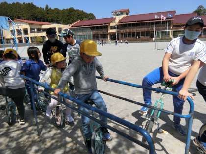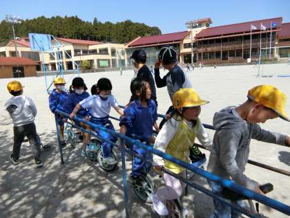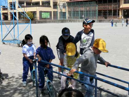 5年生の子たちも数人、一輪車でやってきました。優しいお兄さん・お姉さんたちです。