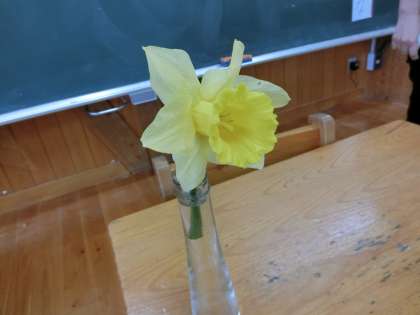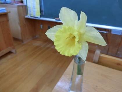 今朝、お家に咲いていた黄色い水仙の花を持ってきてくれた子がいて、子どもたちは、とても嬉しくて「先生、先生、○○君がすいせんを持ってきてくれたよ」と担任の先生のところに報告に来ました。一輪のすいせんの花が、教室をパッと明るくしていました。このお花のおかげで、3年生の子たちは、よりいっそう「すいせんのラッパ」のお話が好きになったことでしょう。