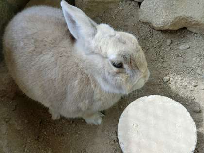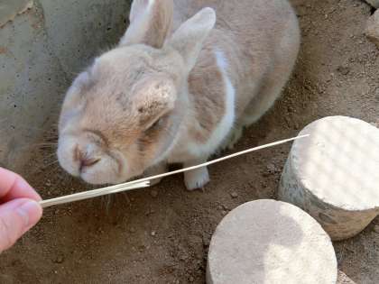 長年連れ添ったもう1羽のウサギ(ゆうき)が昨年天国に行ってしまいましたが、残された1羽のウサギ(くるみ)はとてもご長寿さんですが元気に過ごしています。干し草を差し出したら、むしゃむしゃ食べてくれました。頭も少し触らせてくれました。おとなしくてとてもよい子のウサギさんです。ボランティアを引き受けてくださった皆様、くるみに代わってお礼を申し上げます。よろしくお願いいたします。