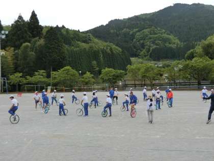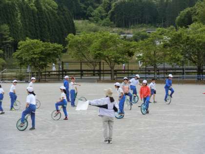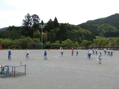 雨が落ちてきそうな曇り空ですが、時間を惜しむように4年生以上の一輪車練習が行われています。子どもたちと先生たちが真剣に向き合って創りあげている様子が伝わってきます。運動会まであと5日。