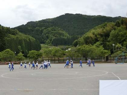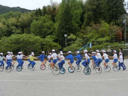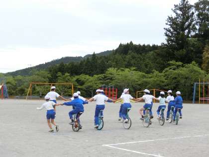 雨雲レーダーをチェックして、雨が落ちてくる前に、どうしてもやっておきたい一輪車演技の練習を行いました。子どもたちは小走りで体育倉庫に道具を取りに行き、小走りで演技の場所に集合しました。「残り少ない練習。ひょっとしたら最後になるかもしれない練習」そんな気持ちが表情や行動に表れていました。「手を広げて!」「がんばるよ!」そんな声がたくさん聞こえてきました。その様子を3年生の子どもたちが2階のテラスから見つめて応援していました。きっと「来年は自分たちも一輪車演技をやるんだ」という気持ちで見ていたと思います。