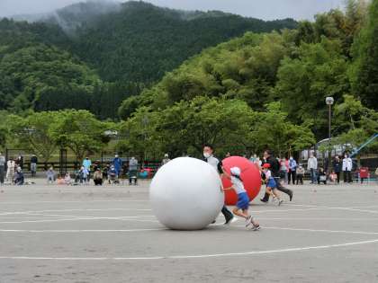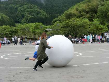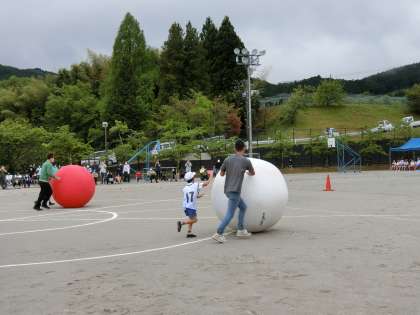 1,2,3年生の親子競技です。赤白対抗の大玉送りです。最後まで勝敗の行方が分からない熱戦でした!盛り上がりました!
