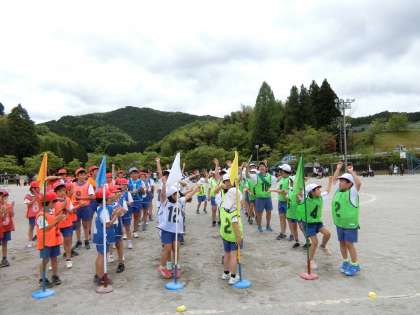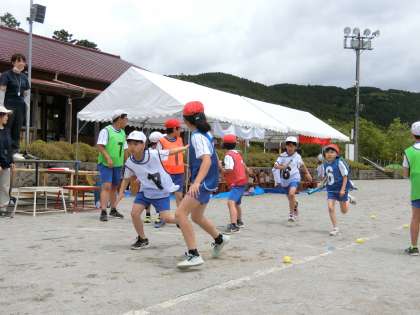 6色リレーです。がんばれ!がんばれ!勝ったのは白組でした。