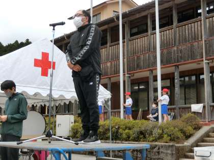 閉会式の様子です。PTA会長さんからは、がんばった子どもたちにお褒めの言葉をいただきました。PTAから今回子どもたちにノート、ジュース、なわとびの「がんばり賞」をいただきました。ありがとうございました!