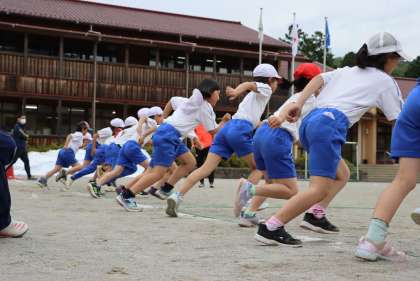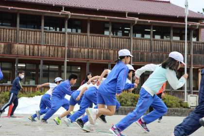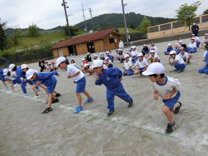 教えていただいたことを生かして走ってみます。どの子も初めに比べて速くきれいに走れるようになってきました。音に反応して素早くスタートできる子が増えました。フォームも整ってきました。