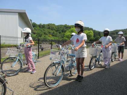 4年生の交通安全教室は、自転車の安全な乗り方の実習もします。