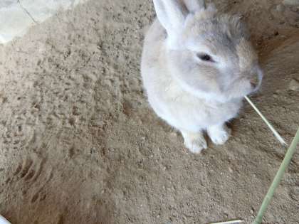 ウサギ小屋をのぞきました。くるみはお気に入りの定位置があるようです。毛が生え替わる時期を迎えています。所々に冬の毛が残ってモコモコしています。くるみも夏支度です。