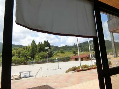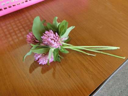 児童玄関に幕のようなものが掛けられています。なんだかわかりますか?先日、幸福を運ぶ鳥、ツバメが校内に舞い込んできました。今はそういう季節ですね。校内で迷子になるとかわいそうなので、これはツバメよけです。ふと、机(消毒用のアルコールが置いてある机です)を見ると、誰かが摘んだ花がありました。