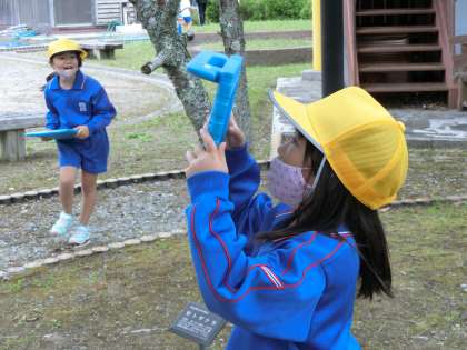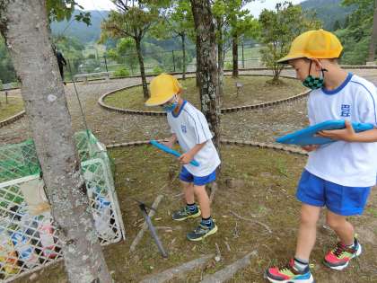 1年生の子どもたちの取材目的は「ネタ集め」です。国語の授業の「みんなにはなそう」という学習で、「こんなものみつけたよ」「みんなわかるかな」ということを伝え合います。子どもたちをデジタルカメラで取材する私(校長)も、子どもたちにタブレットで取材されました。いいネタは見つかるかな?