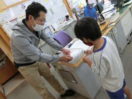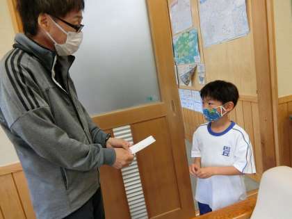 2時間目が終わった後の休み時間に、かわいいお客さんたちが名刺をもって職員室を訪ねてくれました。「わたしは1年生の○○です。よろしくお願いします」「○○先生の好きなものは何ですか。僕は○○が好きです」とご挨拶してくれました。名刺には好きな物の絵と、名前が書いてあります。ありがとう。よろしくお願いします💮