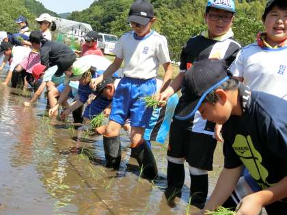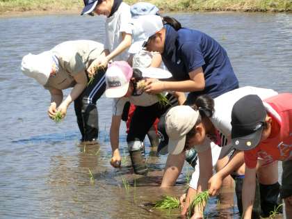 稲作について勉強するのは5年生ですので、田植えの体験は毎年5年生が行っています。今年は特別に6年生も参加させてもらいました。6年生は総合的な学習の時間でSDGsについて勉強しています。