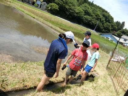 水路で足を洗わせていただきました。きれいな水がたくさん流れていて気持ちいいです。水が冷たくて心地よいので、子どもたちはしばらく水路に入っていました。