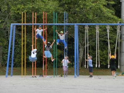 今子どもたちの間ではドッジボールがブームになっているようです。きっかけは、卒業した6年生が運動場にドッジボールコートのラインを引いてくれたこと。1年生から6年生まで、放課になると学年が入り乱れてドッジボールをしています。先生たちが加わる時もあります。ブランコやのぼり棒、サッカーや一輪車で遊ぶ子もいます。放課は子どもたちにとって大切な時間です。リフレッシュして午後の授業もがんばりましょう!