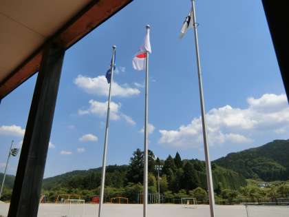 今日の空と日差しはまるで初夏です。どこか旅先のリゾート地にいるかと思ってしまうほど広々と気持ちの良い青空が広がり、白い雲が悠々と流れていきます。子どもたちの足元にできる影もくっきりと短く、日差しの強さも太陽の高さも夏に近づいています。