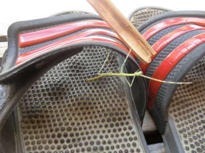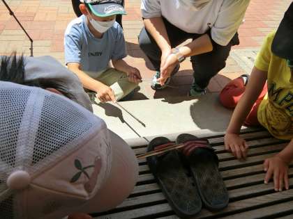 2年生の先生が職員室前のテラスで何か見つけたようで「みんな、来て来て」と2年生の子どもたちを呼びました。小さなナナフシです。「この虫の名前知ってる?」と担任の先生が子どもたちに聞くと、子どもたちは「知らない」「ふなむし」「ななむし」と言っていました。正解はナナフシです。今日の雲も素晴らしいです。