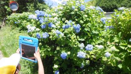 きれいな紫陽花!学校の紫陽花は咲き始めたばかり。こんなきれいな紫陽花はどこに咲いていたのでしょうか。