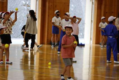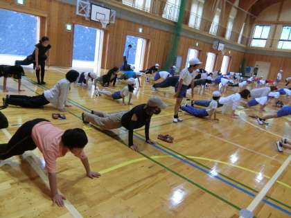 遊び感覚のトレーニングもあれば、なかなか負荷がかかるトレーニングもあります。ボールを投げたり、2人一組でゲーム感覚で行ったりと、和気あいあいとした雰囲気で進んでいきました。
