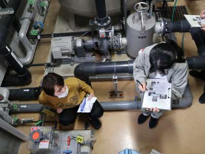 水温24.5度 公開日 2022/06/20 更新日 2022/06/20 校長室から 今日は4時間目に3,4年生が初めてプールに入ります。午後は5,6年生がプールに入ります。昨日も暑かったですね。金曜日から昨日にかけて気温が上がりましたので、水温も順調に上がってきました。 写真は先週の火曜日、子どもたちの下校後に行ったプール管理研修会の様子です。機械室の操作も先生たちがやらなければいけません。子どもたちがプール学習をするためにいろいろな準備が必要です。