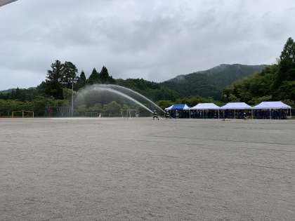 午前中に本校を会場に行われた豊田市消防団第8方面隊合同訓練会に出席させていただきました。今年度は5年ぶりの開催だそうです。地域の防災を担ってくださる消防団の皆様の日頃の訓練の様子とその成果を見せていただきました。本校の保護者の方も何人か消防団に参加していらっしゃると伺っています。昨日の授業参観に続いてお疲れさまです。