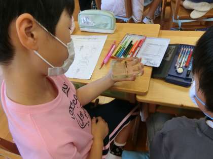 授業の感想を聞くと「楽しかった!」と言っていました。市役所文化財課の駒野先生、本日は楽しい授業を本当にありがとうございました。