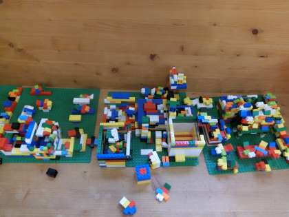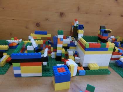 低学年教室の横のワークスペースには、子どもたちが室内で遊べるものが置いてあります。レゴやけん玉、先生がつくった「工作コーナー」もあります。レゴの作品を見ると、この作品にはストーリー(子どもたちの想像した世界)があるんだろうなと思います。「これは、何を作ったの?」と話しかけると、「これはね…」とたくさんしゃべってくれます。