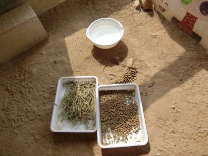 学校閉庁期間(8月10日〜15日)を含む約1週間、ウサギのお世話ボランティアの方々にくるみが大変お世話になりました。今朝、くるみの様子をのぞいてきましたが、ブロックの奥でゆったりと座っていました。外に出てこないかな、と思って干し草を差し出してみましたが、おなかがいっぱいで満足しているのか、干し草に全然反応してくれませんでした。