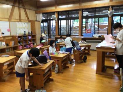教室では子どもたちが朝の支度をしています。もう支度が終わっている子もちらほら。1、2年生もしっかりしてきました。やることがわかっていて、自分でどんどん進めます。「先生、これどうしたらいいの?」と聞く声も少なくなってきて、安心して動いている子が多いように感じます。