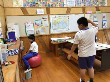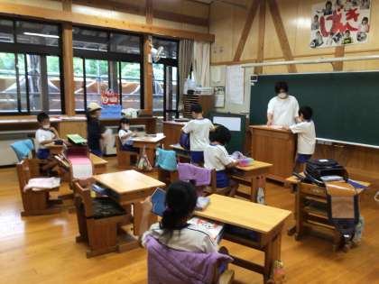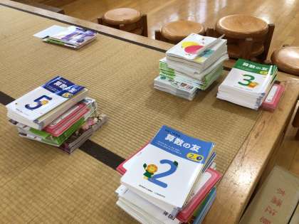 朝の学習が始まる前の教室です。算数の友など、上下に分かれているテキストや教科書が、後期に向けて準備されています。今日からしっかり授業が始まります。メリハリをつけて頑張りましょう。